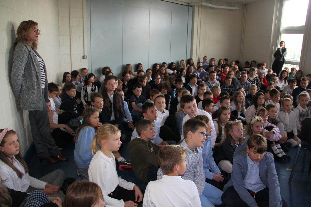 Uczniowie klas 7a oraz 4c zaprezentowali program artystyczny uświetniający to wydarzenie.