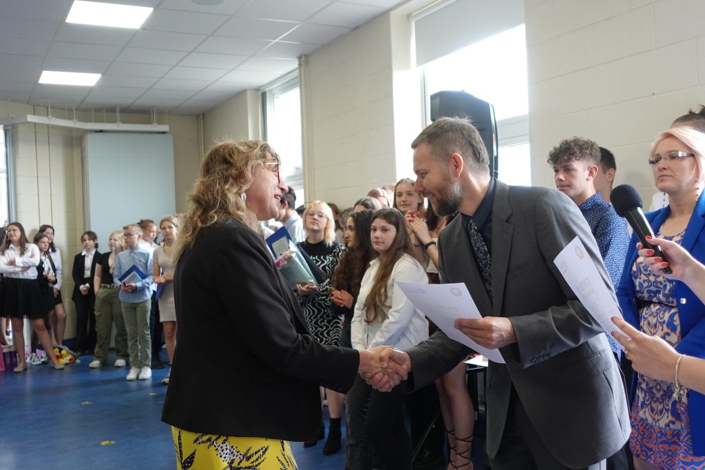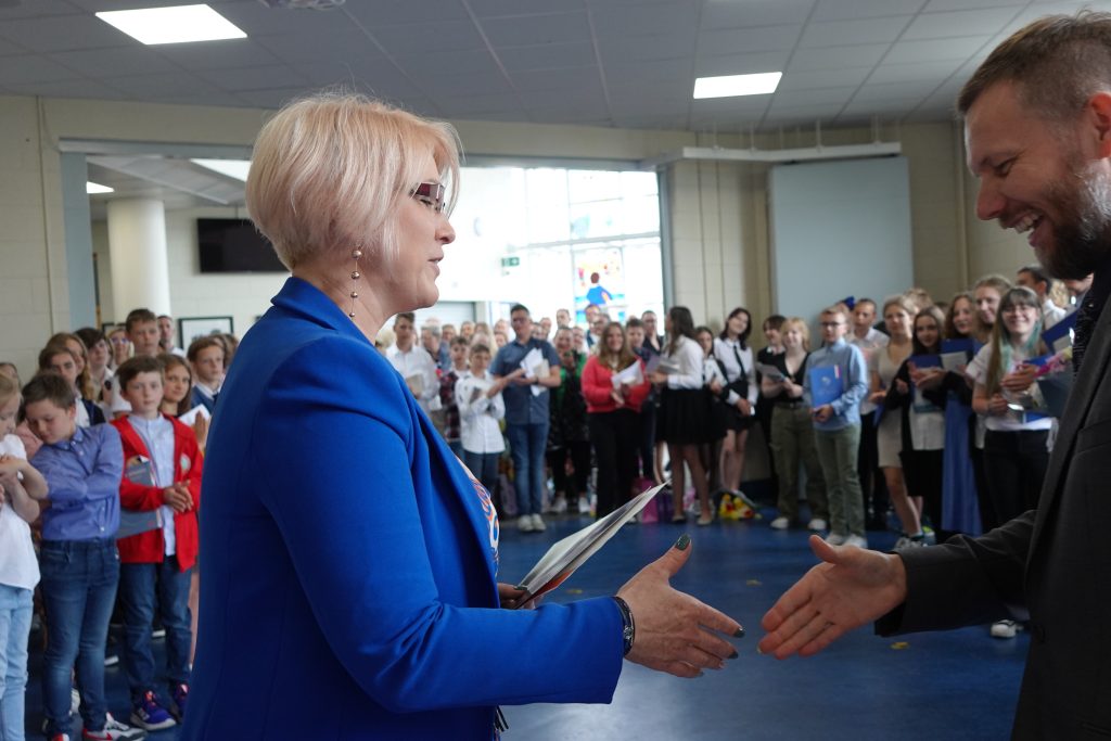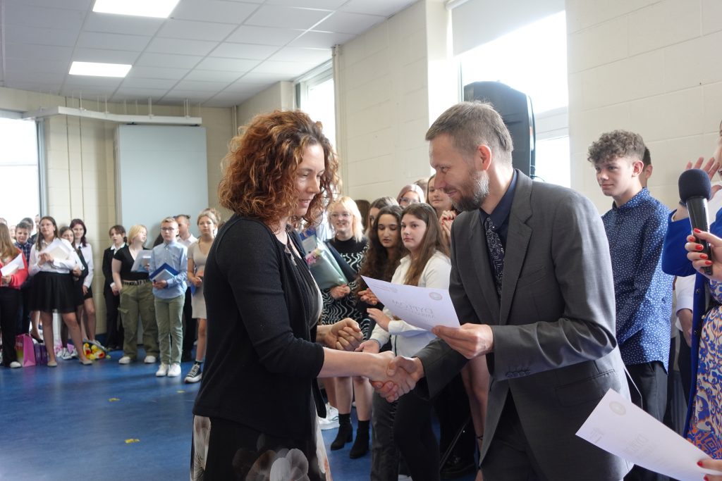 Była także okazja do wręczenia nagród laureatom szkolnego konkursu „Przepisz wiersz”. Ponad to w szkole miała miejsce uroczystość zorganizowana przez uczniów kończących naukę w szkole, na którą zaprosiliśmy rodziców. Pląsom i miłym chwilom nie było końca.
