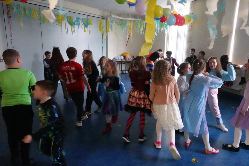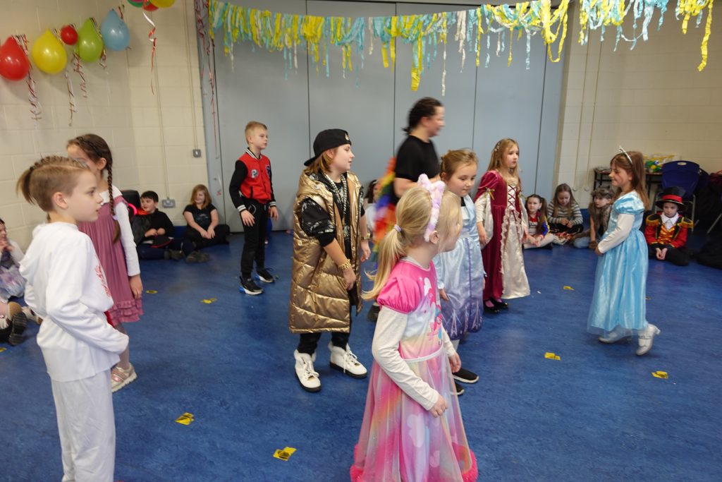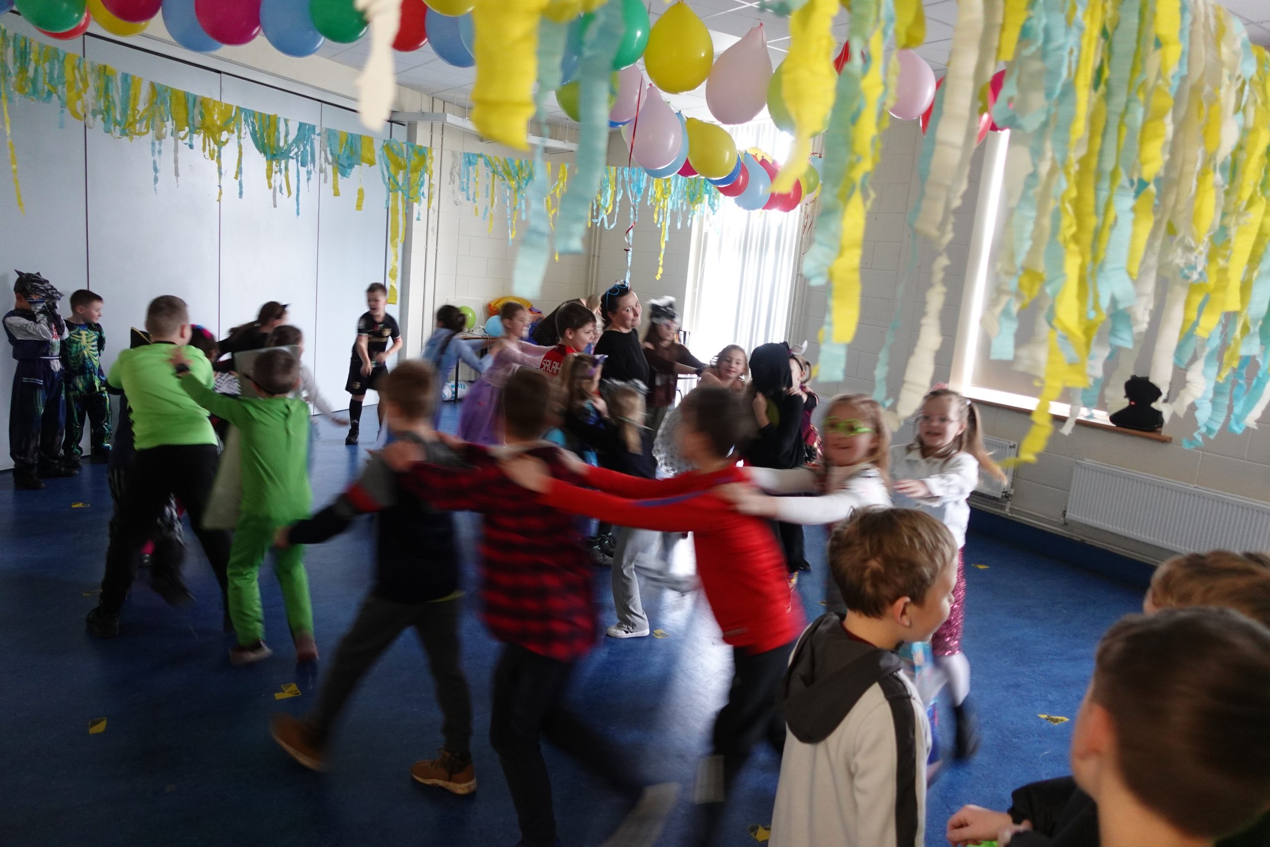 Młodsi uczniowie oddawali się karnawałowej zabawie.
