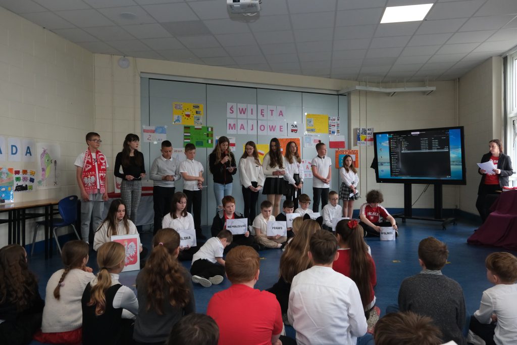 Jak co roku uczniowie Szkoły Polskiej świętują obchody uroczystości patriotycznych organizowanych na terenie Szkoły z okazji Dnia Flagi Rzeczypospolitej Polskiej, Dnia Polonii i Polaków za granicą oraz święta Konstytucji 3 Maja.
