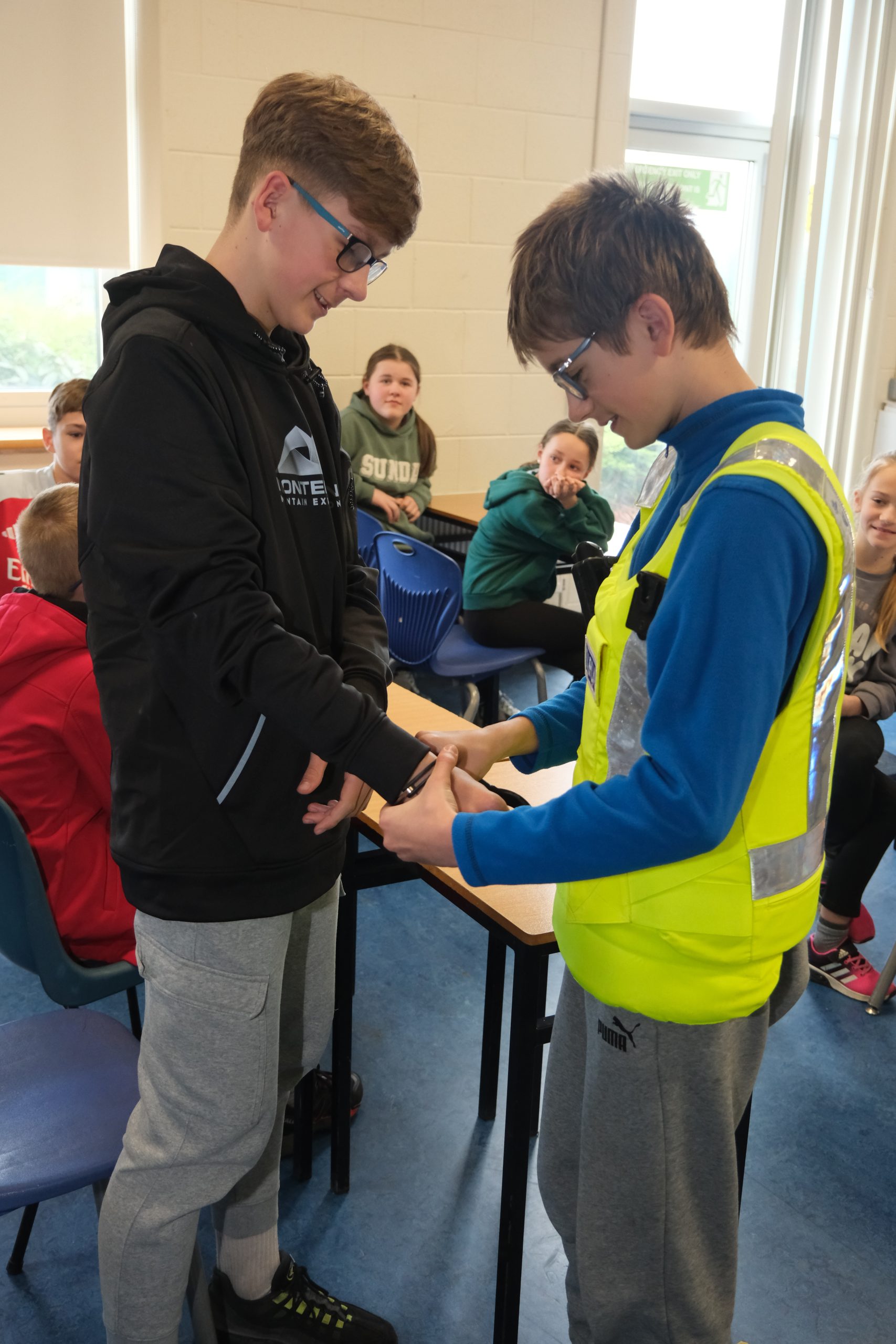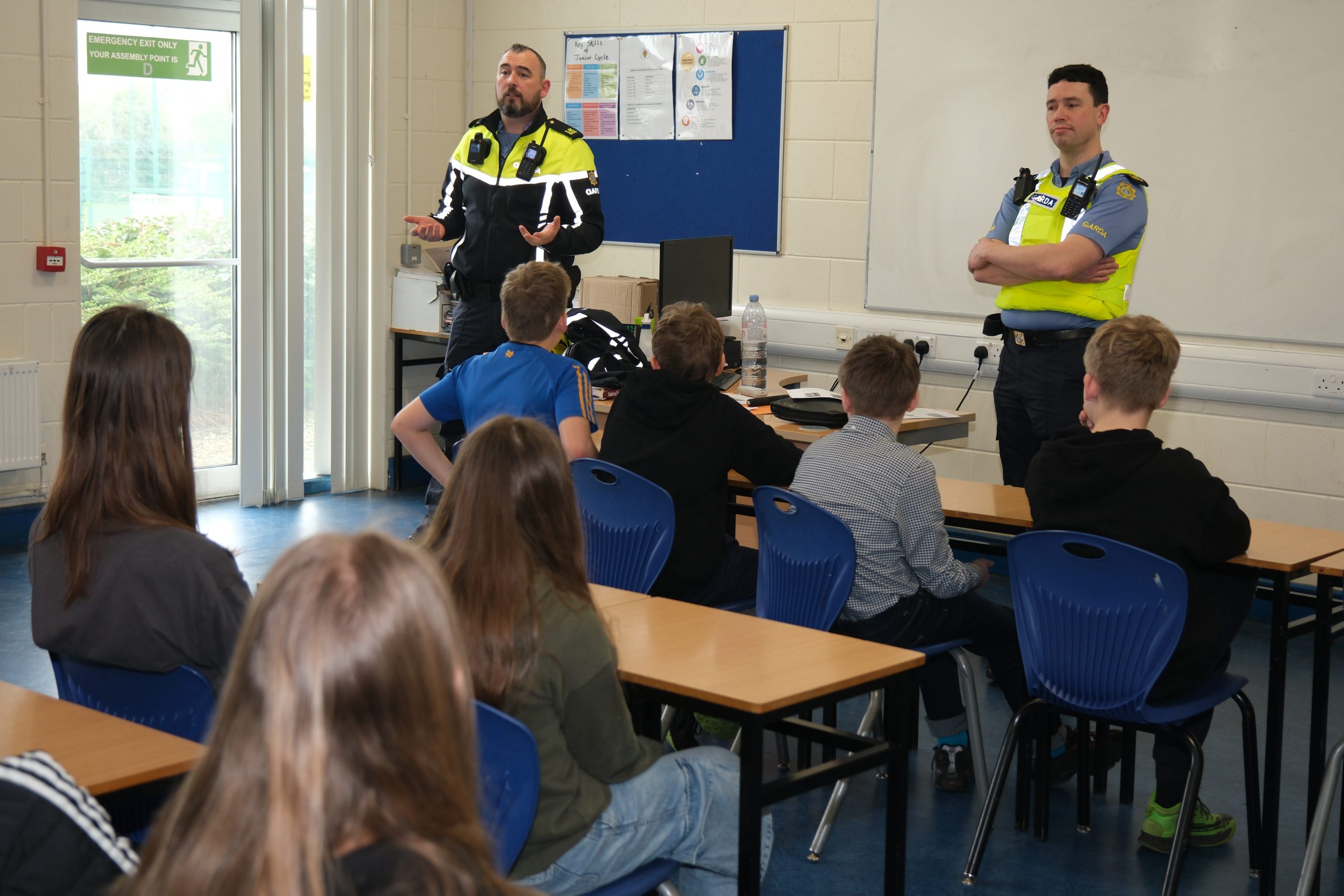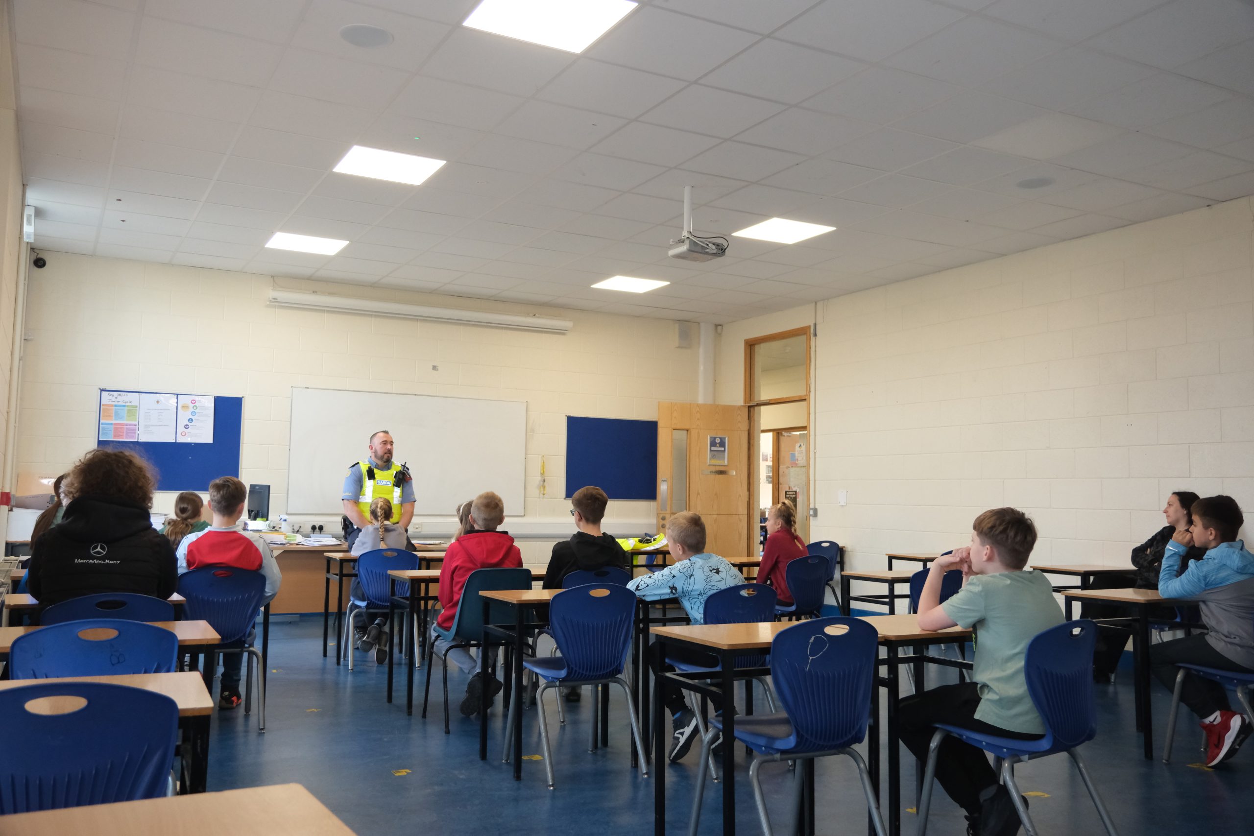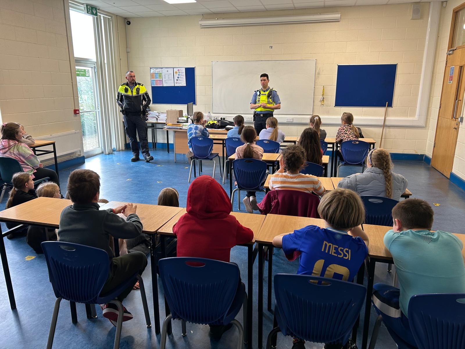 Funkcjonariusze przypomnieli uczniom zasady bezpiecznego poruszania się po drogach, podkreślając znaczenie noszenia elementów odblaskowych i ostrożności przy przechodzeniu przez jezdnię. Omówili również zasady korzystania z rowerów i hulajnóg, zwracając uwagę na obowiązujące przepisy.