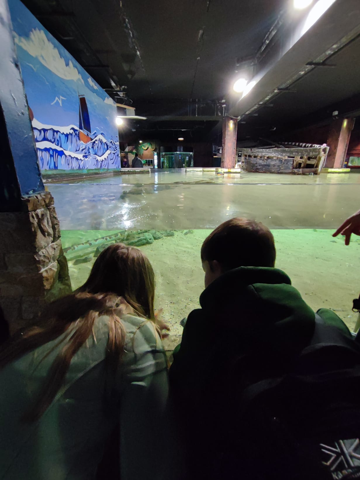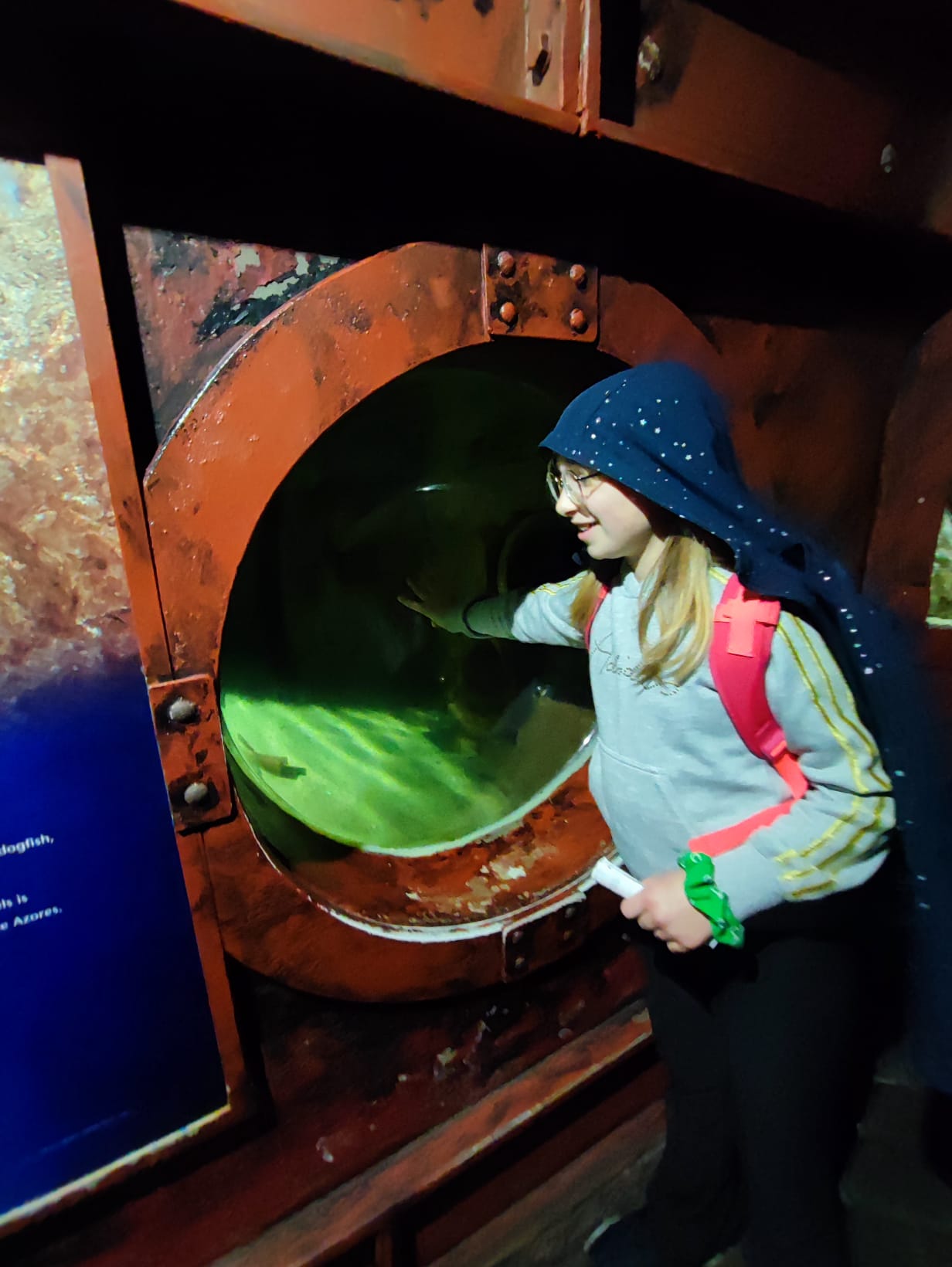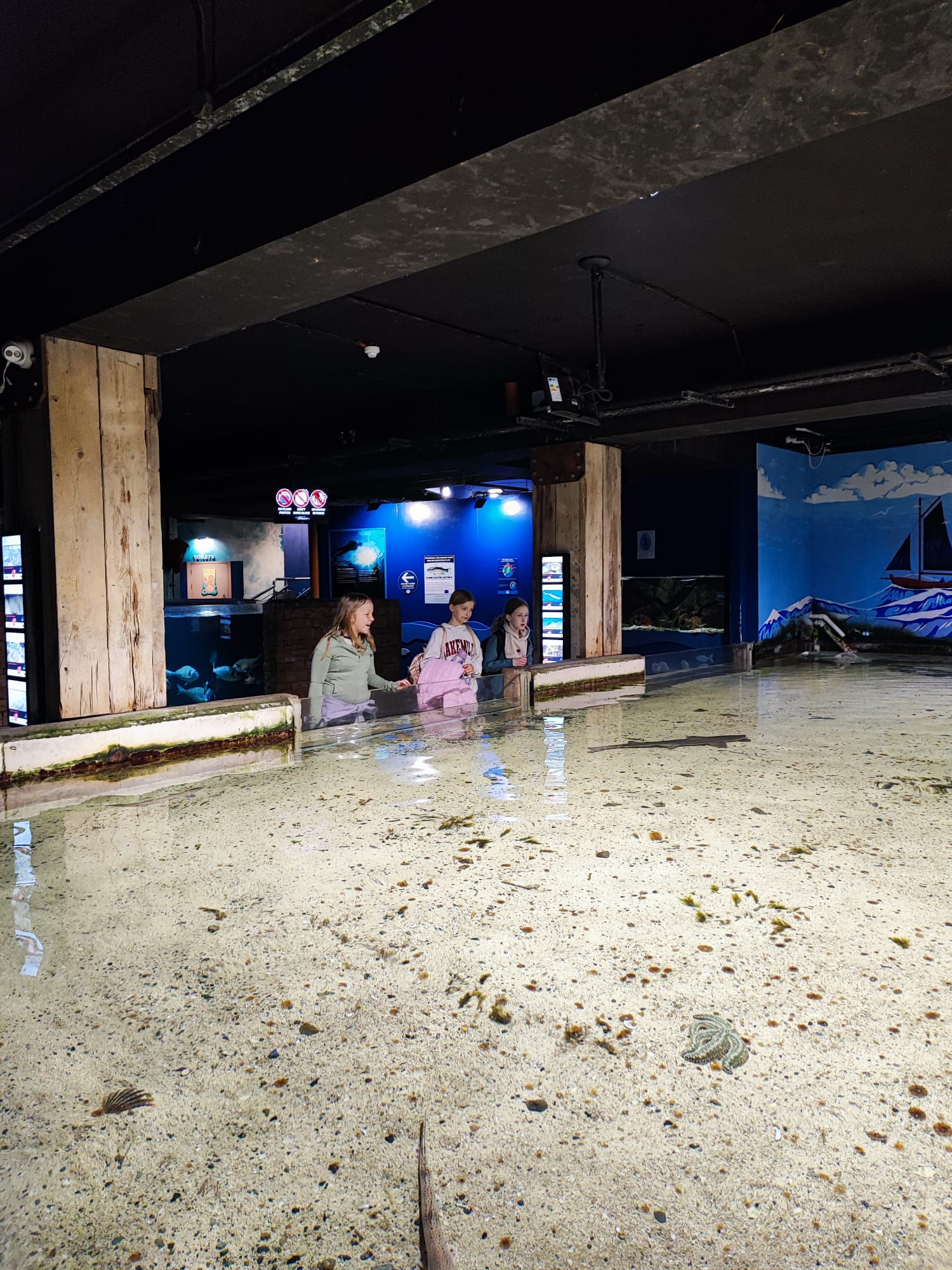 Udało nam się zobaczyć płaszczki, piranie, kolorowe rybki z rafy koralowej, ukwiały, rozgwiazdy, koniki morskie i wiele, wiele innych wodnych stworzeń. Duże wrażenie zrobiła na dzieciach ośmiornica 🐙, „Przedszkole dla rekinów i płaszczek” (Shark&Skate Nursery) oraz ogrooomny szkielet wieloryba.